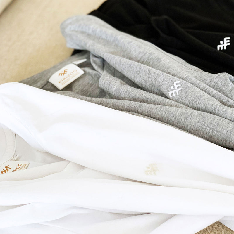 KiRiVOO’s white garments are not dyed unless specifically requested by customers. We collaborate with a local company using only OEKO-TEX certified dyes.